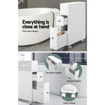 Update your bathroom to turn a chaotic routine into a calm one. With the Artiss Toilet Storage Caddy, you can store your daily bathroom items and access them easily knowing where they are. It creates space and order too, making your bathroom neat and tidy. The slim and compact caddy comprises an non-woven basket, storage drawers and cleaning brush holders too. Made of quality and eco-friendly MDF board, the caddy is more stable and stands up better in heat and humidity. It is also fitted with castor wheels for easy movement.