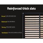 Give your bedroom a luxurious and modern touch with the Artiss Anna bed frame. With its exquisite modern headboard, elegant fabric finish and sumptuous finishes; you will smile every time you see it! The bed frame is well crafted with solid wooden slats that help distribute body weight evenly throughout the ensemble, and heavy-duty metal connectors help keep the structure stable and firm with use. It is time to get the bed frame you and your bedroom need, and you will not be disappointed with the Artiss Anna bed frame! br> Note: Mattress is sold separately.