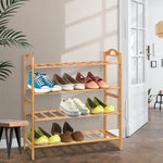 Made from quality and durable bamboo, the Shoe Rack comprises a 4-tier rack that can store up to 16 pairs of your walking, running and lifestyle footwear. It is eco-friendly, non-toxic and tough, with countersunk screws and rounded corners to enhance its safe usage. Two convenient integrated handles facilitate easy carrying while the open design allows for good ventilation for your footwear wherever you place it. In the hallway, balcony, patio, bedroom or children's room, the Bamboo Shoe Rack will certainly not be deemed out of character with your home decoration.