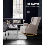 Be swayed. Rock on and relax with our Artiss Gaia Rocking Chair. It comes with two sets of removable legs so that you can use it as a rocking chair or a stationary chair. The gentle swaying of the rocking chair would be perfect for reading, listening to music, taking a much-needed nap, or even rocking your baby to sleep. Or simply swap the legs over and you have a classic accent chair. The iconic design and the tufted wingback exude elegance and timeless appeal. This makes the chair suitable for any décor, from your living room to your nursery. The extra thick foam padding and wide back ensure ultimate comfort with exceptional support. The armchair feet are fitted with pads to keep your floors pristine from scratches and damage. Together with a reinforced wooden frame and quality faux linen fabric upholstery, our armchair is guaranteed to stand up to durable use for many years to come.
