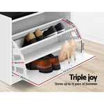 Get yourself a shoe cabinet with an aesthetic difference. Our Artiss Shoe Storage Bench adds a touch of luxury and multi-functionality to the ubiquitous shoe cabinet. On first impression, it looks just like a plush PU leather stool. Pull down the front panel and you find three tiers of adjustable shoe shelves with ample space for up to 15 pairs of various footwear (depending on shoe sizes). Made from quality particle board, the bench is sturdy and finished in melamine for durability and easy maintenance. Not least, its thoughtful design means that you can place it in your hallway or entrance for a neat and tidy look that blends seamlessly with your home décor. So remove the clutter and get organised with our shoe storage bench. We are sure it will feet right in with your discerning taste for all things stylish and chic.