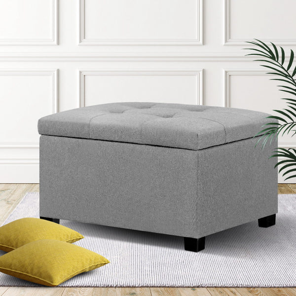 Looking for a storage solution with more taste? Look no further than our premium Artiss Storage Ottoman. With an elegant tufted seat upholstered in soft faux linen fabric, our ottoman is simply luxurious to rest on and adds a plush touch to any home. But more than that, it also provides a neat storage space for your home essentials. Blankets, throws, pillows, magazines and even toys can be stowed away in a discreet, easy-to-access manner. Plus, the ottoman is also strong and sturdy and stands up to durable use. The lift-up top enables easy access while its robust metal hinges ensure that it will stay open and not falter easily. Not least, the ottoman has detachable legs that enable it to be more versatile in use. So whether you are using the ottoman as extra lounge seating, bedroom decor or your favourite footrest, our multifunctional and versatile ottoman matches form with function perfectly and elegantly.