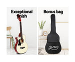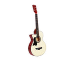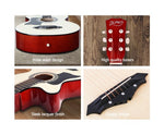 Sitting out on the porch playing guitar and singing with your mates or even going away sitting around the campfire and singing in harmony is definitely enjoyable and fun; and you will need this affordable Acoustic Cutaway Steel-Stringed Guitar to complete your performance.Crafted from the finest materials, the guitar is made of laminated linden for its top, back, and side. With the Hard Wood neck and Maple Wood Fingerboard, the cutaway delivers beautiful sound and chic look at one time. The delicate process of manufacture including bracing and finishing techniques, thickness and wood tuning guarantee this guitar a real pleasure to play.