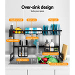 It has two tiers to provide more drying room and a space-saving over-the-sink design that fits neatly around and over your kitchen sink, meaning no need for extra countertop space. Eight storage accessories – plate rack, bowl rack, fruit/veg basket, cutlery caddy, knife holder, cutting board holder, detergent basket and utensil hooks – are included for you to neatly stack and store your tableware and cleaning supplies in their rightful place, with no loose knives teetering dangerously among precariously stacked dishes. Better still, the arrangement of the accessories can be customised to suit your needs so that everything is precisely where you want it. Best of all, the dish rack is constructed from heavy-duty stainless steel with sleek black coating and fitted with non-slip suction feet, for a durable structure that stands firmly.