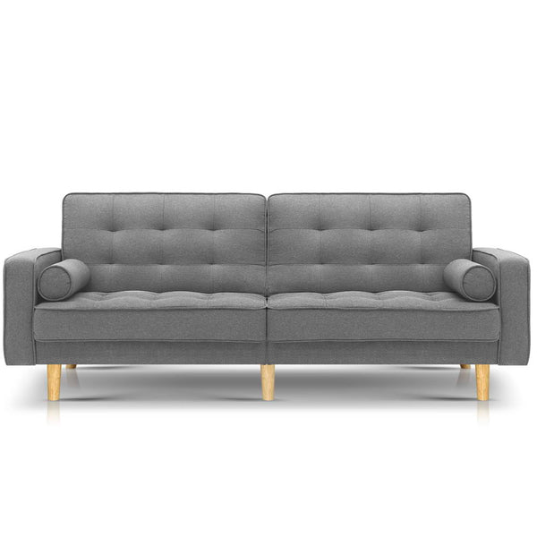 A pleasing and modern design, our Artiss 3-seater Sofa Bed is anything but ordinary. Outwardly, the 3-seater functions as a thickly-cushioned sofa upholstered in breathable faux fabric linen with a classic tufted design backrest. The workmanship is meticulous and sewing immaculate. Not least, the strong solid wood legs add a nice creative touch to the overall ensemble. Comes the time to require an extra bed, the 3-seater can be easily transformed into a comfortable bed. The backrest can also be adjusted to three settings of your preference, from sleeping to watching TV or simply chilling out. Better still, the backrest now has a split-fold function that allows you to use the backrests separately for different sofa configurations. Every part of the 3-seater sofa bed is made of eco-friendly and wear-resistant materials and built to last with a sturdy wooden construction.