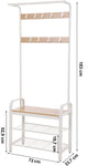 This hat and coat stand not only has 9 sturdy hooks and a clothes rail at the top, but it also offers two metal wire shelves for shoes and a sturdy bench that you can comfortably sit on while you put them on