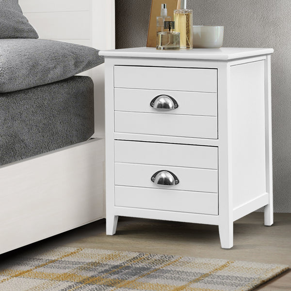 With its vintage chic, our Artiss Sage Bedside Table is as stylish as it is practical. The 18cm thickness Paulownia wood and MDF construction ensure that the furniture piece is able to withstand daily robust use. The drawers are deep and run smoothly. Use it in any space or in any room where the convenient and compact drawers will do wonders to your storage needs. Finished in an eco-friendly non-toxic paint, the ensemble also includes antique-inspired handles, a neat backing and anti-scratch feet pads.