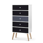 A design that is Scandinavian-inspired and while still reminiscent of decades-old influences, our Artiss 5-drawer Tallboy offers full functionality with subtle style. Made from quality particle board and a smooth paper veneer finish, the two-tone tallboy adds chic appeal to your d��cor and is the perfect choice to grace a dressing room, bedroom, living room or any other space in your home or establishment. The five generous-sized drawers provide ample space for all your clothing, fashion accessories, personal essentials and more. The splayed legs offer a unique, reliable stance, while the classic knob handles and smooth anti-rust metal drawer slides offer smooth, hassle-free use every time. Not sure this piece will suit your home? Take advantage of the latest 3D augmented reality technology to see it first hand �C just scan the QR code on our website and decide for yourself!