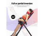 If you often suffer from back pain after a day of work, our Everfit Inversion Table may be the solution for you. Hanging upside down can help you improve flexibility, reduce nerve pressure, realign the spine and relax tensed muscles. The extra wide backrest is padded with high-density foam to provide you with adequate support and comfort. Inversion is adjustable up to 180° with three pre-set locking positions too. A safety belt and locking ankle clamp always keep you securely in place, the removable cushioned lumbar support provides added comfort, and the padded U-frame handles ensure that you always have a firm grip and can easily return to the upright position. The sturdy frame is constructed with industrial-strength powder-coated rust-proof steel and can support a maximum weight of up to 120kg. The height can be adjusted to too, to accommodate all users. Best of all, the inversion table is foldable so you can easily store it away.