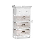 Looking for that cottagecore aesthetic without moving to the countryside? Add a chic, rustic presence to your home with the Artiss 3-basket Cabinet. Beautifully crafted in an endearing combination of Paulownia wood, MDF board, plywood and PP material, this cabinet evokes a charming, simple living feel and is useful in so many ways. The design has a timeless appeal, and its practicality is enhanced by the two deep drawers and three movable baskets with cloth liners that are washable for easy maintenance. The cabinet will match perfectly with your existing décor thanks to its neutral white tones, so you can use it in any room. Not least, the anti-scratch feet pads will help to keep your floor in pristine condition. The cabinet comes fully assembled so you can place it straight out of the box. Get yours today and create your perfect home.